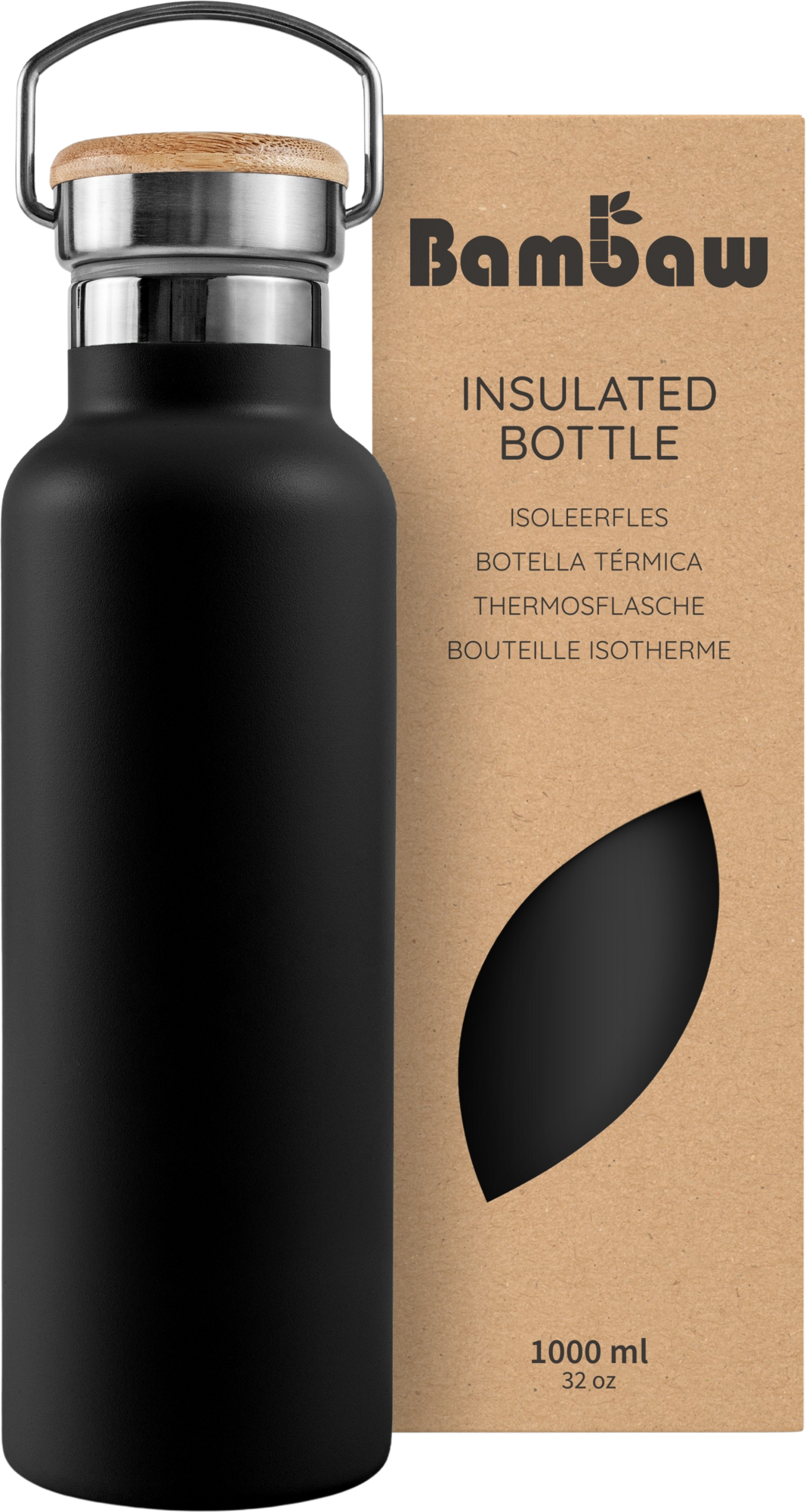 Bambaw Bouteille Isotherme en Inox 1000 ml, Jet Black