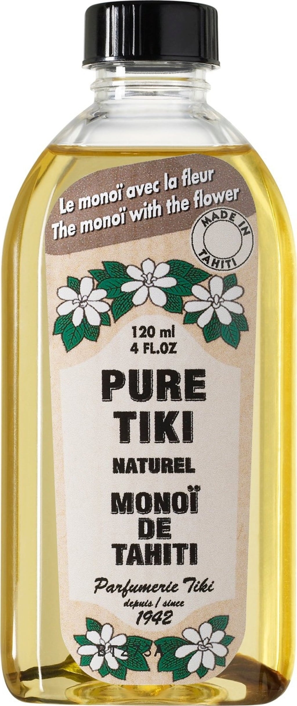 La noix de coco est sans aucun doute un symbole des tropiques. En Polynésie française, le cocotier est l'arbre le plus utilisé au quotidien. Et l'huile de coco est un composant essentiel du Monoï de Tahiti - une huile de base qui capte le parfum et les propriétés des fleurs de tiaré lors de la macération. La recette d'extraction et le conditionnement sont les mêmes depuis 1942. A cette époque, les exportations de Tahiti vers le reste du monde commencent. L'entreprise familiale Parfumeria Tiki garantit la qualité et l'origine de tous les ingrédients, qui ne peuvent être que des produits polynésiens, avec un certificat.