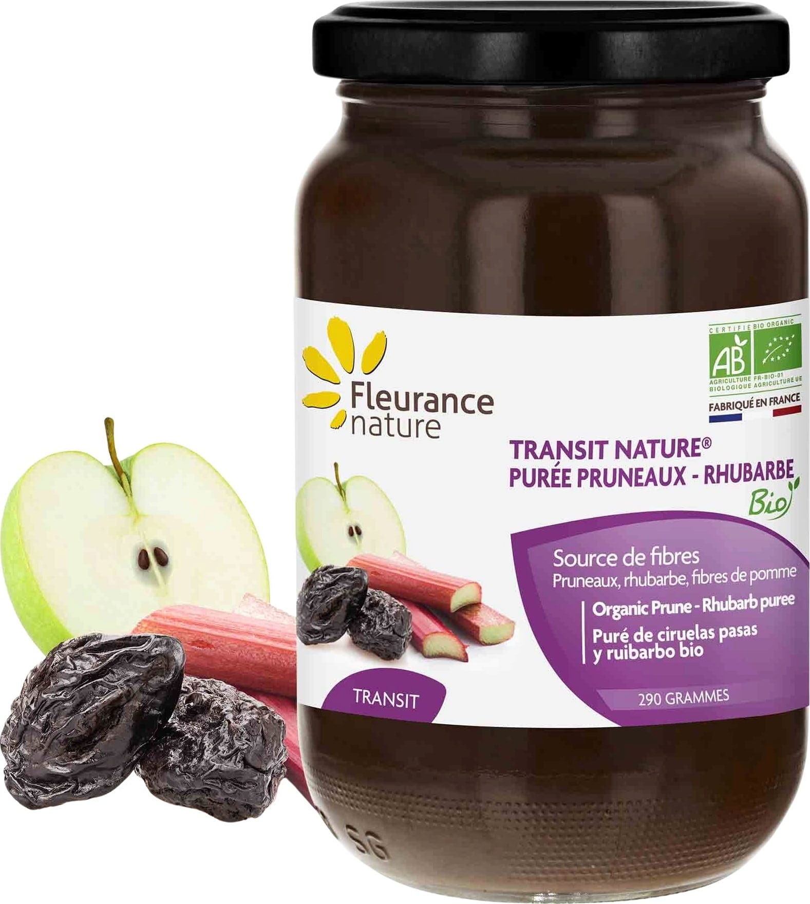 Fleurance Nature Purée de Prune & Rhubarbe Bio, 290 g