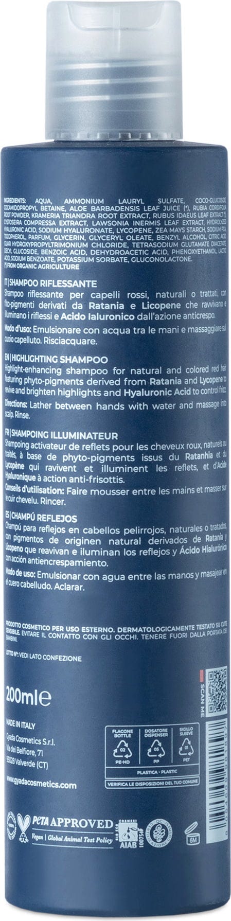 GYADA Cosmetics Shampoing Éclat Couleur "Hyalurvedic" - Red Hair, 200 ml